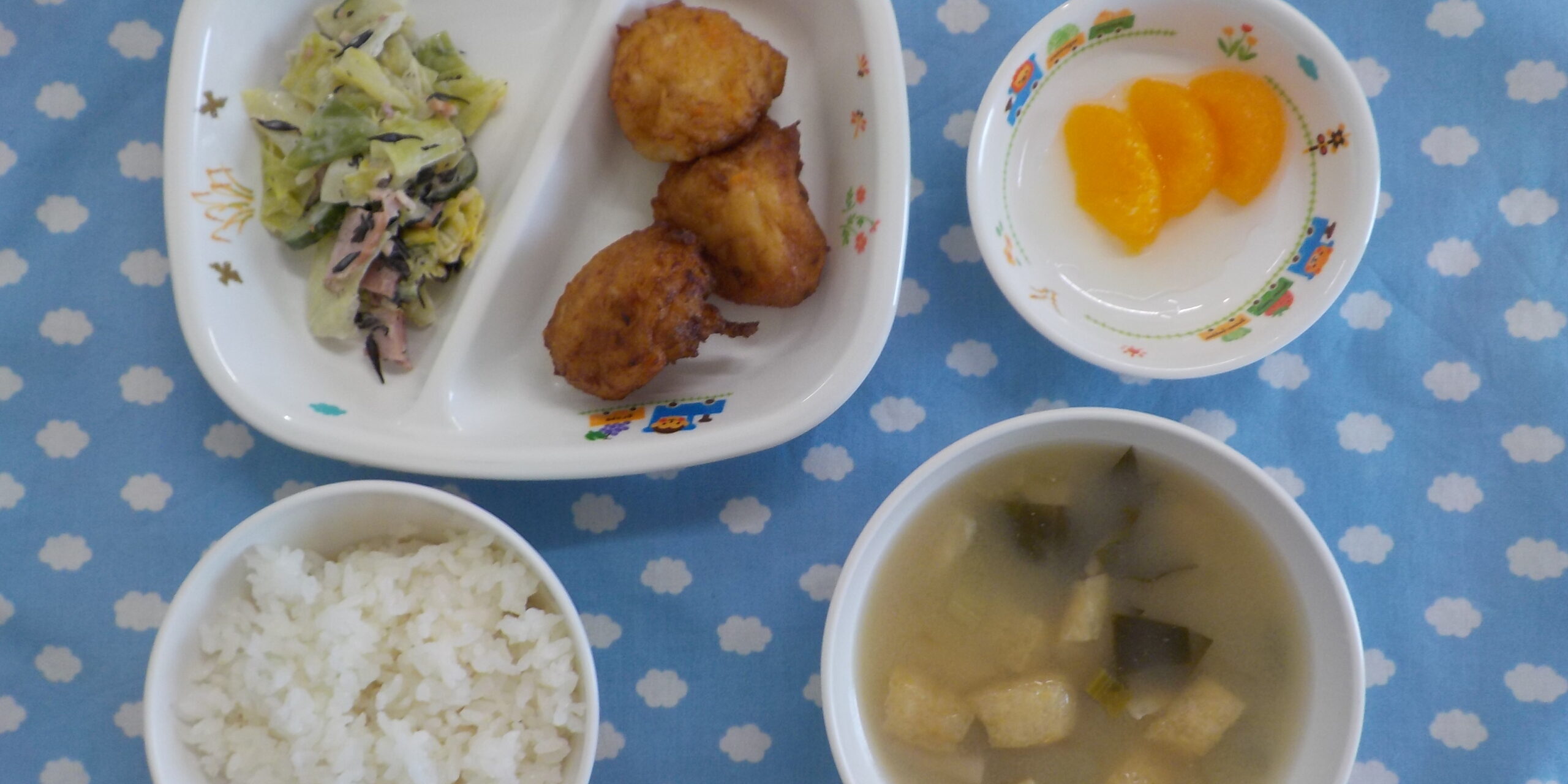 4月22024あおぞら給食 <給食> ・ツナと豆腐の落とし揚げ ・キャベツとひじきの和風コールスロー ・ごはん ・味噌汁 ・みかん <おやつ> ・牛乳 ・わかめおにぎり Category: あおぞら給食2024年4月2日 Share this post Share on FacebookShare on Facebook Share on XShare on X Post navigationPreviousPrevious post:4月1日(月)NextNext post:4月3日(水)Related posts11月1日(土)2025年11月1日10月31日(金)2025年11月1日10月30日(木) ☆ハロウィンメニュー2025年10月30日10月29日(水)2025年10月29日10月28日(火)2025年10月28日10月27日(月)2025年10月27日10月25日(土)2025年10月25日10月24日(金)2025年10月24日10月23日(木)2025年10月23日10月22日(水)2025年10月22日10月21日(火)2025年10月21日10月20日(月)2025年10月20日10月18日(土)2025年10月18日10月17日(金)2025年10月17日10月16日(木)2025年10月16日10月15日(水)2025年10月15日10月14日(火)2025年10月14日10月11日(土)2025年10月11日10月10日(金)2025年10月10日10月9日(木)2025年10月9日10月8日(水)2025年10月8日10月7日(火)2025年10月7日10月6日(月)2025年10月6日10月4日(土)2025年10月4日
