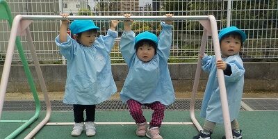 先生がとばしたシャボン玉をお友だちと嬉しそうに追いかけたり、一生懸命鉄棒にぶら下がろうとしたりする姿が見られました。