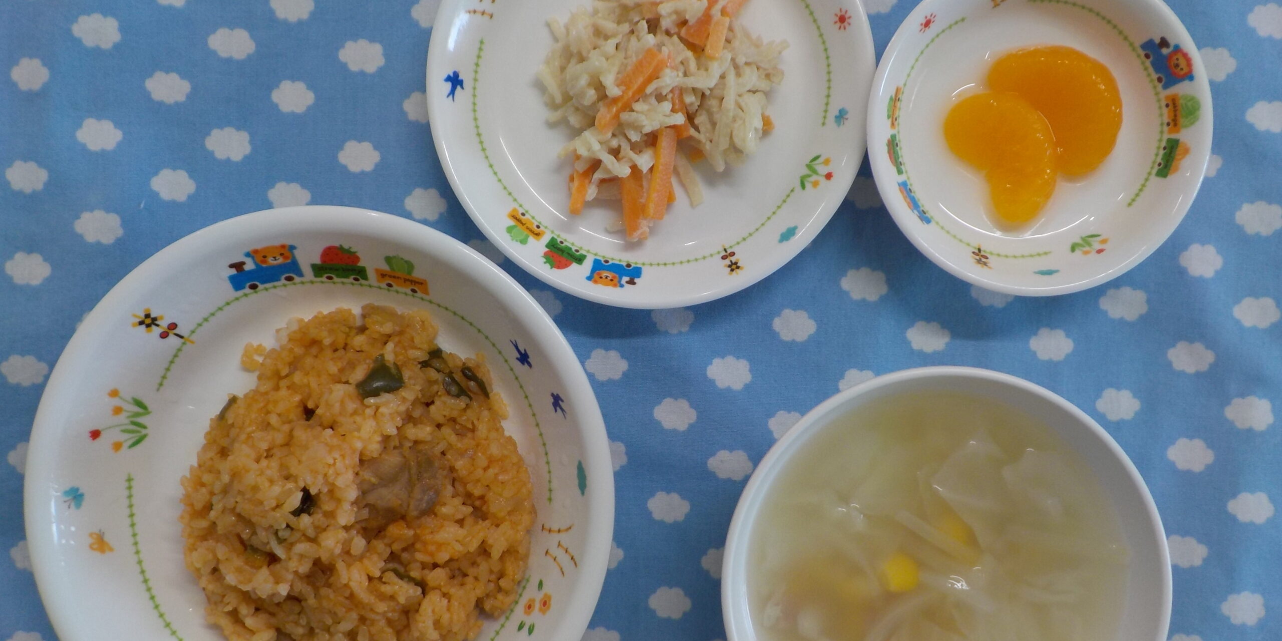 6月12024あおぞら給食 <給食> ・チキンライス ・切干大根のサラダ ・コンソメスープ ・みかん <おやつ> ・牛乳 ・野菜プリッツ Category: あおぞら給食2024年6月1日 Share this post Share on FacebookShare on Facebook Share on XShare on X Post navigationPreviousPrevious post:6月1日(土)NextNext post:6月3日(月)Related posts11月1日(土)2025年11月1日10月31日(金)2025年11月1日10月30日(木) ☆ハロウィンメニュー2025年10月30日10月29日(水)2025年10月29日10月28日(火)2025年10月28日10月27日(月)2025年10月27日10月25日(土)2025年10月25日10月24日(金)2025年10月24日10月23日(木)2025年10月23日10月22日(水)2025年10月22日10月21日(火)2025年10月21日10月20日(月)2025年10月20日10月18日(土)2025年10月18日10月17日(金)2025年10月17日10月16日(木)2025年10月16日10月15日(水)2025年10月15日10月14日(火)2025年10月14日10月11日(土)2025年10月11日10月10日(金)2025年10月10日10月9日(木)2025年10月9日10月8日(水)2025年10月8日10月7日(火)2025年10月7日10月6日(月)2025年10月6日10月4日(土)2025年10月4日