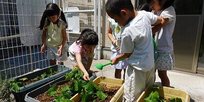 今日から、夏野菜(ゴーヤ、きゅうり)の水やりが始まり「いつできるかな?」と期待しながらあげました。