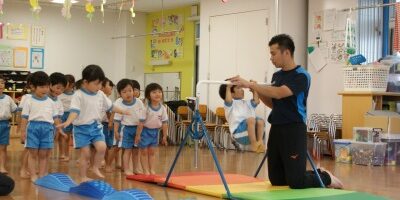 また、「ろうそくゲーム」では、先生にタッチされないように両足でジャンプをしながら逃げ、