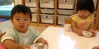 朝の会の後は、みんなが大好きなおやつタイムです!