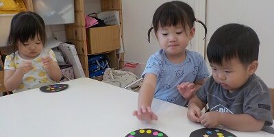 真剣な表情でシール貼りに取り組み、完成した花火をお部屋に飾り、みんな嬉しそうに眺めていました。