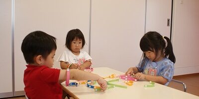 お友だちと長く繋げたり、輪っか同士をくっつけて頭につけたり、メガネを作ったり。