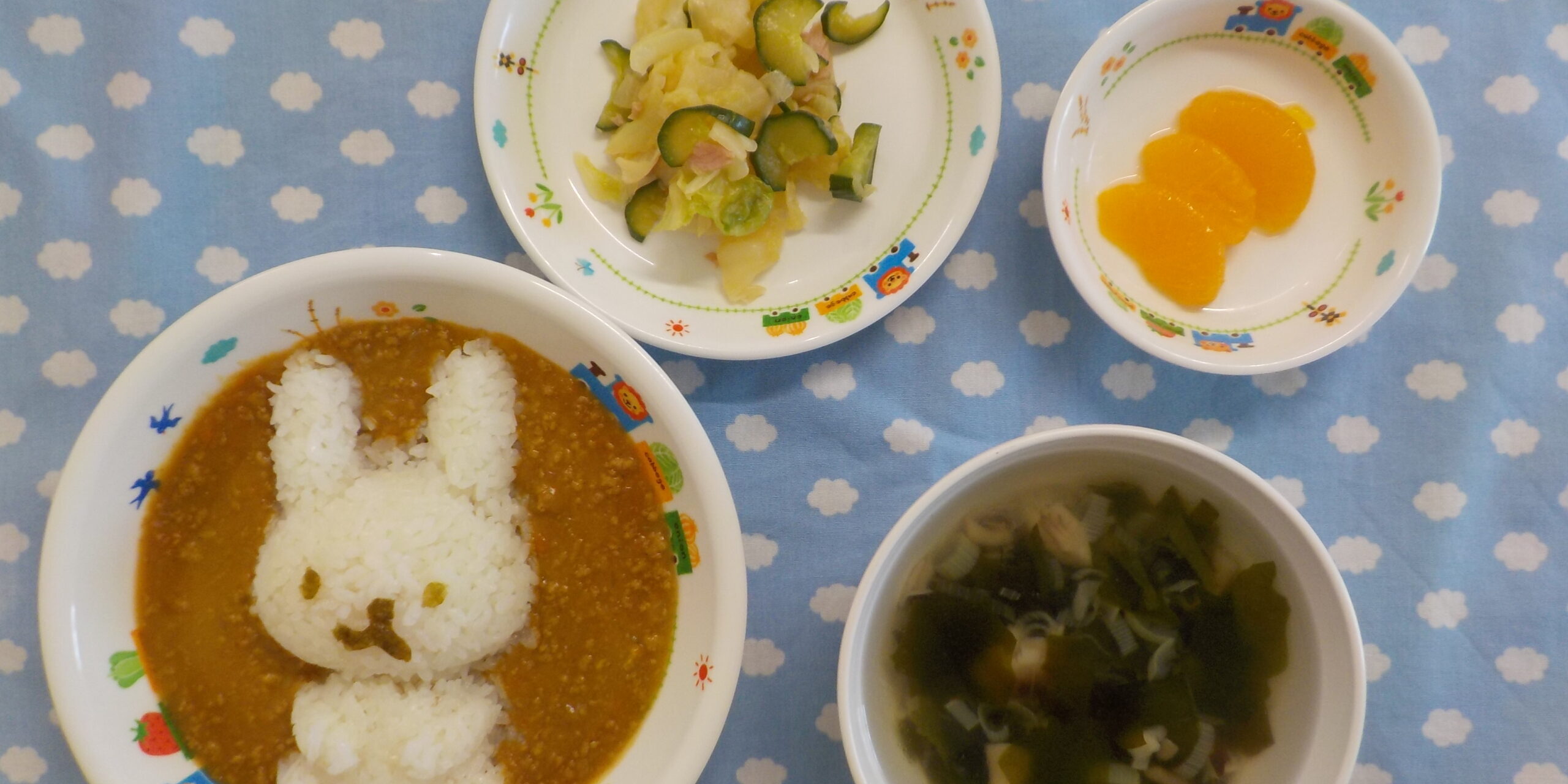 9月172024あおぞら給食<給食> ・お月見カレー ・キャベツのサラダ ・わかめスープ ・みかん <離乳食> 〇後期食 ・かぼちゃと鶏のドリア風 ・キャベツとたまねぎの味噌汁 <おやつ> ・牛乳 ・うさぎスイートポテト <離乳食> ・マッシュさつまいも Category: あおぞら給食2024年9月17日 Share this post Share on FacebookShare on Facebook Share on XShare on X Post navigationPreviousPrevious post:9月14日(土)NextNext post:9月17日(火)Related posts11月1日(土)2025年11月1日10月31日(金)2025年11月1日10月30日(木) ☆ハロウィンメニュー2025年10月30日10月29日(水)2025年10月29日10月28日(火)2025年10月28日10月27日(月)2025年10月27日10月25日(土)2025年10月25日10月24日(金)2025年10月24日10月23日(木)2025年10月23日10月22日(水)2025年10月22日10月21日(火)2025年10月21日10月20日(月)2025年10月20日10月18日(土)2025年10月18日10月17日(金)2025年10月17日10月16日(木)2025年10月16日10月15日(水)2025年10月15日10月14日(火)2025年10月14日10月11日(土)2025年10月11日10月10日(金)2025年10月10日10月9日(木)2025年10月9日10月8日(水)2025年10月8日10月7日(火)2025年10月7日10月6日(月)2025年10月6日10月4日(土)2025年10月4日
