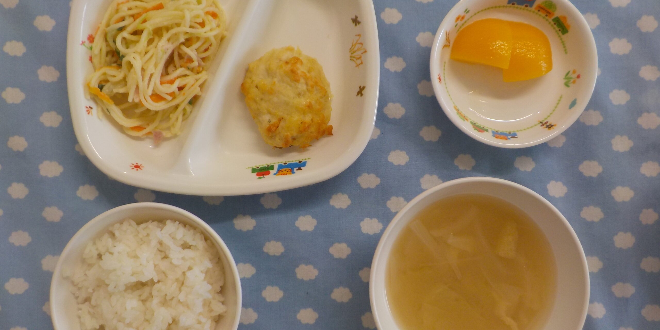 9月262024あおぞら給食 <給食> ・チーズつくね ・スパゲティサラダ ・ごはん ・味噌汁 ・もも ☆本日、離乳食の提供はありませんでした。 <おやつ> ・牛乳 ・にんじんケーキ Category: あおぞら給食2024年9月26日 Share this post Share on FacebookShare on Facebook Share on XShare on X Post navigationPreviousPrevious post:令和6年度 第2回 地域公開保育NextNext post:9月26日(木)Related posts11月1日(土)2025年11月1日10月31日(金)2025年11月1日10月30日(木) ☆ハロウィンメニュー2025年10月30日10月29日(水)2025年10月29日10月28日(火)2025年10月28日10月27日(月)2025年10月27日10月25日(土)2025年10月25日10月24日(金)2025年10月24日10月23日(木)2025年10月23日10月22日(水)2025年10月22日10月21日(火)2025年10月21日10月20日(月)2025年10月20日10月18日(土)2025年10月18日10月17日(金)2025年10月17日10月16日(木)2025年10月16日10月15日(水)2025年10月15日10月14日(火)2025年10月14日10月11日(土)2025年10月11日10月10日(金)2025年10月10日10月9日(木)2025年10月9日10月8日(水)2025年10月8日10月7日(火)2025年10月7日10月6日(月)2025年10月6日10月4日(土)2025年10月4日