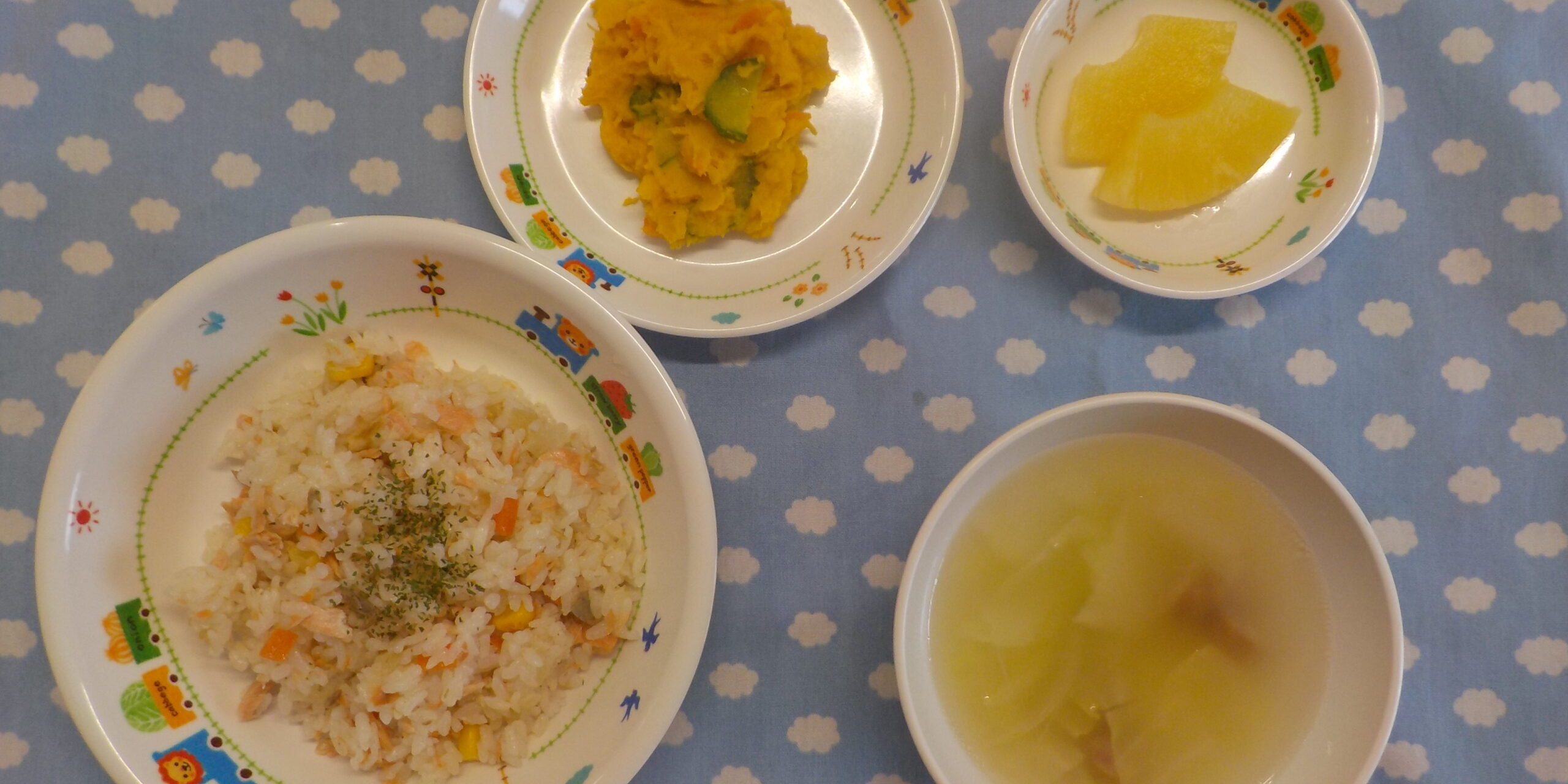 12月212024あおぞら給食 <給食> ・鮭ピラフ ・かぼちゃサラダ ・ポトフスープ ・パイン <おやつ> ・牛乳 ・チーズボールフライ <離乳食> 〇完了食・普通食 ・牛乳 ・おせんべい Category: あおぞら給食2024年12月21日 Share this post Share on FacebookShare on Facebook Share on XShare on X Post navigationPreviousPrevious post:12月20日(金)NextNext post:12月21日(土)Related posts11月1日(土)2025年11月1日10月31日(金)2025年11月1日10月30日(木) ☆ハロウィンメニュー2025年10月30日10月29日(水)2025年10月29日10月28日(火)2025年10月28日10月27日(月)2025年10月27日10月25日(土)2025年10月25日10月24日(金)2025年10月24日10月23日(木)2025年10月23日10月22日(水)2025年10月22日10月21日(火)2025年10月21日10月20日(月)2025年10月20日10月18日(土)2025年10月18日10月17日(金)2025年10月17日10月16日(木)2025年10月16日10月15日(水)2025年10月15日10月14日(火)2025年10月14日10月11日(土)2025年10月11日10月10日(金)2025年10月10日10月9日(木)2025年10月9日10月8日(水)2025年10月8日10月7日(火)2025年10月7日10月6日(月)2025年10月6日10月4日(土)2025年10月4日