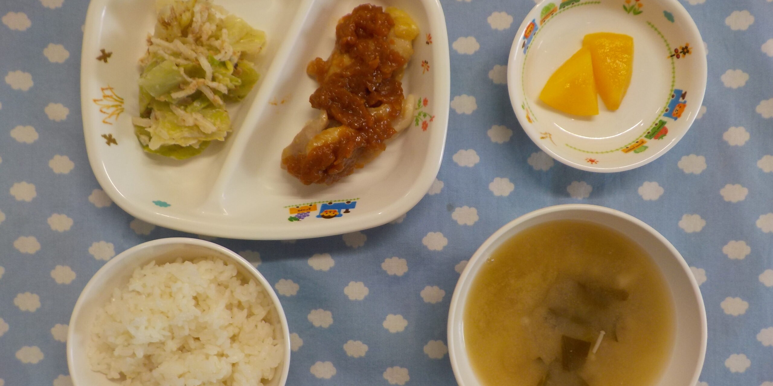 1月82025あおぞら給食 <給食> ・バーベキューチキン ・キャベツのごまだれサラダ ・ごはん ・味噌汁 ・もも <おやつ> ・牛乳 ・バナナスコーン Category: あおぞら給食2025年1月8日 Share this post Share on FacebookShare on Facebook Share on XShare on X Post navigationPreviousPrevious post:1月7日(火)NextNext post:1月8日(水)Related posts11月5日(水)2025年11月5日11月4日(火)2025年11月5日11月1日(土)2025年11月1日10月31日(金)2025年11月1日10月30日(木) ☆ハロウィンメニュー2025年10月30日10月29日(水)2025年10月29日10月28日(火)2025年10月28日10月27日(月)2025年10月27日10月25日(土)2025年10月25日10月24日(金)2025年10月24日10月23日(木)2025年10月23日10月22日(水)2025年10月22日10月21日(火)2025年10月21日10月20日(月)2025年10月20日10月18日(土)2025年10月18日10月17日(金)2025年10月17日10月16日(木)2025年10月16日10月15日(水)2025年10月15日10月14日(火)2025年10月14日10月11日(土)2025年10月11日10月10日(金)2025年10月10日10月9日(木)2025年10月9日10月8日(水)2025年10月8日10月7日(火)2025年10月7日