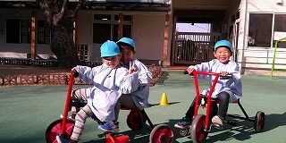 遊具遊びが大好きな子どもたちは、三輪車やすべり台などでいつも元気に遊んでいます。