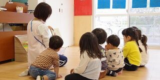 絵本の時間になると、上手に座りみんな集中して絵本を楽しんでいました。