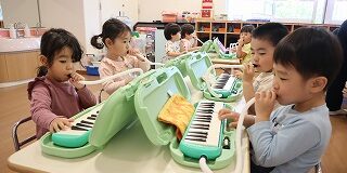 初めて使う鍵盤ハーモニカを喜びながら、準備の仕方や片付け方を教えてもらいました。