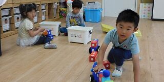 室内遊びでは、磁石ブロックを使って車を作ったりお家を作ったりして遊んでいました。