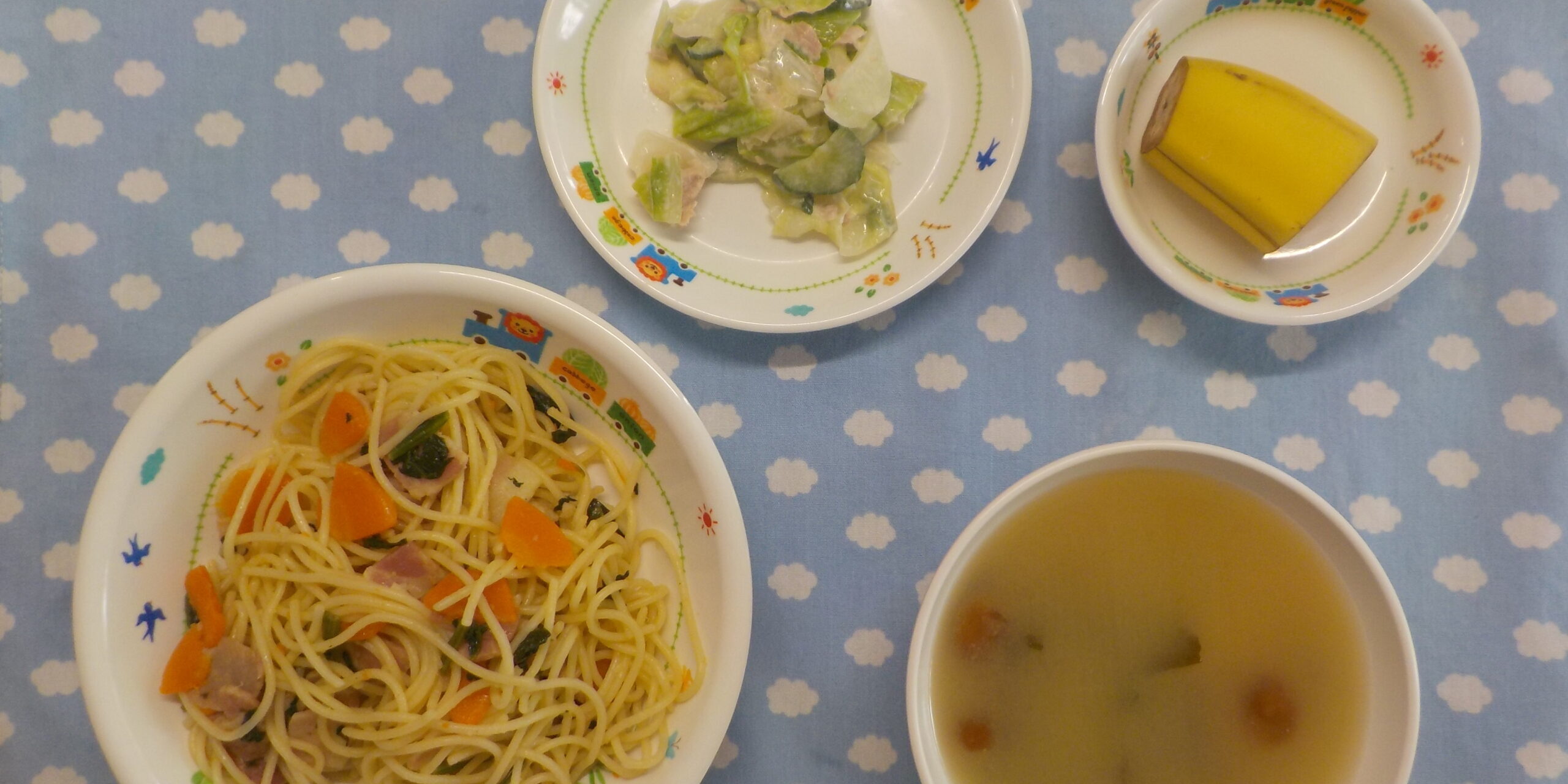 5月212025あおぞら給食 <給食> ・和風ベーコンスパゲティ ・キャベツのツナマヨサラダ ・味噌汁 ・バナナ 〇完了食 <おやつ> ・牛乳 ・たぬきおにぎり 〇完了食 ・牛乳 ・わかめごはん Category: あおぞら給食2025年5月21日 Share this post Share on FacebookShare on Facebook Share on XShare on X Post navigationPreviousPrevious post:5月21日(水)NextNext post:5月22日(木)Related posts12月10日(水)2025年12月10日12月9日(火)2025年12月9日12月8日(月)2025年12月8日12月6日(土)2025年12月6日12月5日(金)2025年12月5日12月4日(木)2025年12月4日12月3日(水)2025年12月3日12月2日(火)2025年12月2日12月1日(月)2025年12月1日11月29日(土)2025年11月29日11月28日(金)2025年11月28日11月27日(木)2025年11月27日11月26日(水)2025年11月26日11月25日(火)2025年11月25日11月22日(土)2025年11月22日11月21日(金)2025年11月21日11月20日(木)2025年11月20日11月19日(水)2025年11月19日11月18日(火)2025年11月18日11月17日(月)2025年11月17日11月15日(土)2025年11月15日11月14日(金)2025年11月14日11月13日(木)2025年11月13日11月12日(水)2025年11月12日