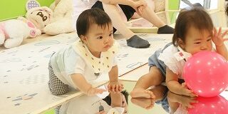 お部屋でつくし組と一緒に鏡のマットやすべり台で遊びました。