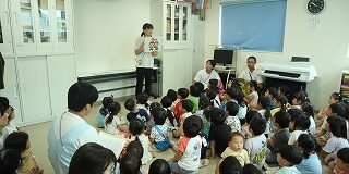 放送が聞こえると保育者の声を聞きながら避難できるように並んで、落ち着いて階段を一段ずつ上がって二階に行く事が出来ました。