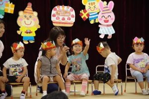 とても可愛らしくて素敵な笑顔も見ることができました。ケーキをみんなで拭き消すと息を合わせて火を消すことが出来ました。