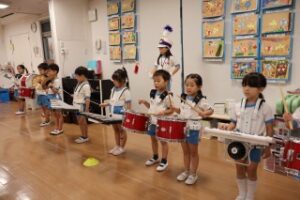 小学校練習では広い場所で思いきり楽器を演奏でき、とても頑張っていました。