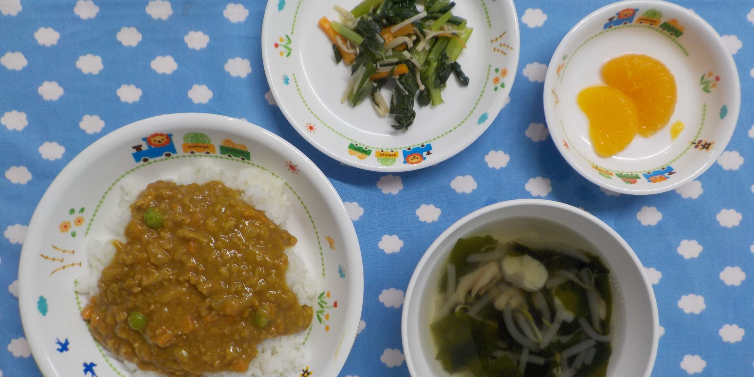 10月12025あおぞら給食 <給食> ・キーマカレー ・こまつなの和え物 ・わかめスープ ・みかん 〇完了食 <離乳食> 〇後期食 ・かぼちゃと鶏のドリア風 ・たまねぎとにんじんの味噌汁 <おやつ> ・牛乳 ・カルピスケーキ 〇完了食 <離乳食> ・しらす粥 Category: あおぞら給食2025年10月1日 Share this post Share on FacebookShare on Facebook Share on XShare on X Post navigationPreviousPrevious post:10月1日(水)NextNext post:10月2日(木)Related posts11月27日(木)2025年11月27日11月26日(水)2025年11月26日11月25日(火)2025年11月25日11月22日(土)2025年11月22日11月21日(金)2025年11月21日11月20日(木)2025年11月20日11月19日(水)2025年11月19日11月18日(火)2025年11月18日11月17日(月)2025年11月17日11月15日(土)2025年11月15日11月14日(金)2025年11月14日11月13日(木)2025年11月13日11月12日(水)2025年11月12日11月11日(火)2025年11月11日11月10日(月) ☆七五三メニュー2025年11月10日11月8日(土)2025年11月8日11月7日(金)2025年11月8日11月6日(木)2025年11月6日11月5日(水)2025年11月5日11月4日(火)2025年11月5日11月1日(土)2025年11月1日10月31日(金)2025年11月1日10月30日(木) ☆ハロウィンメニュー2025年10月30日10月29日(水)2025年10月29日