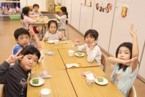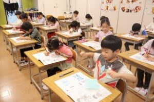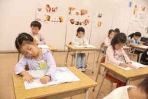 午後はひらがなワークをしました。子どもたちは正しい姿勢に気をつけながら真剣に取り組んでいます。