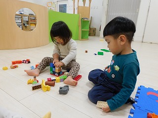 指先が器用になってブロック遊びでは、車を作ったり高く積み上げたりと、様々な形が作れるようになりました。