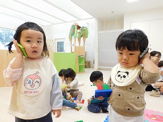 「もしもし〇〇ちゃんですか?」と電話ごっこもつくし組さんでは流行っています。