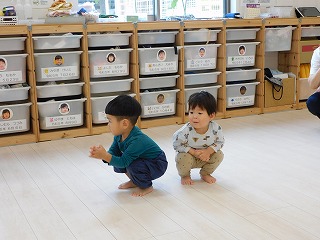 「体操の用意」と声がかかるとしゃがんで準備万端です。