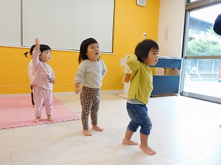 音楽に合わせて、元気いっぱい体を動かして楽しみました。