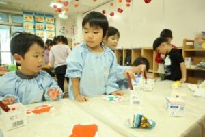 好きな色を選んで自分の作品がどんな模様になるか嬉しそうに満足そうに見つめてる子どもたちが可愛らしかったです。