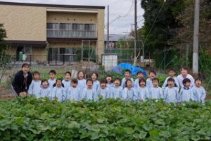 「葉っぱが大きくなってるね!」や「どんな形のさつまいもがあるかな~」と掘るのをとても楽しみにしている様子でした。