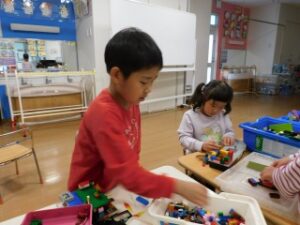 お兄さんお姉さんは、写し絵をしたり、小さいお友だちはブロックをたくさん繋げたりして楽しみました。