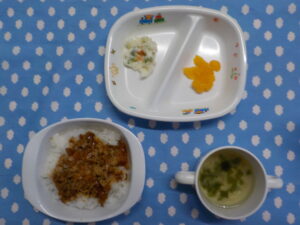 11月192025あおぞら給食 <給食> ・ハヤシライス ・ポテトサラダ ・わかめスープ ・みかん 〇完了食 <離乳食> 〇後期食 ・かぼちゃと鶏のドリア風 ・にんじんとじゃがいもの味噌汁 <おやつ> ・牛乳 ・しらすのピザ 〇完了食 <離乳食> ・しらす粥 Category: あおぞら給食2025年11月19日 Share this post Share on FacebookShare on Facebook Share on XShare on X Post navigationPreviousPrevious post:11月18日(火)NextNext post:11月19日(水)Related posts11月20日(木)2025年11月20日11月18日(火)2025年11月18日11月17日(月)2025年11月17日11月15日(土)2025年11月15日11月14日(金)2025年11月14日11月13日(木)2025年11月13日11月12日(水)2025年11月12日11月11日(火)2025年11月11日11月10日(月) ☆七五三メニュー2025年11月10日11月8日(土)2025年11月8日11月7日(金)2025年11月8日11月6日(木)2025年11月6日11月5日(水)2025年11月5日11月4日(火)2025年11月5日11月1日(土)2025年11月1日10月31日(金)2025年11月1日10月30日(木) ☆ハロウィンメニュー2025年10月30日10月29日(水)2025年10月29日10月28日(火)2025年10月28日10月27日(月)2025年10月27日10月25日(土)2025年10月25日10月24日(金)2025年10月24日10月23日(木)2025年10月23日10月22日(水)2025年10月22日