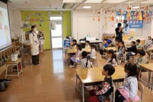 花王様から「身のまわりをきれいに」という指導で机の拭き方について教えてもらいました。