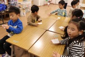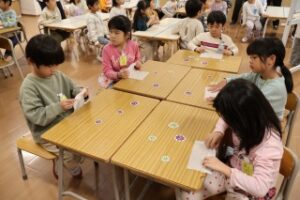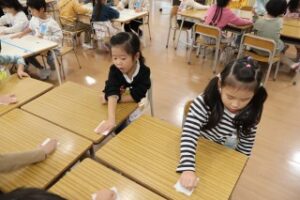 ひまわり組は毎日当番活動で机を拭いているのでとても上手にできていました。