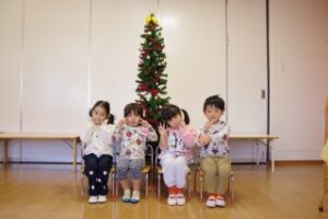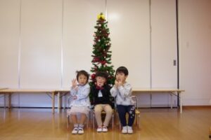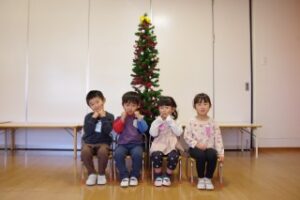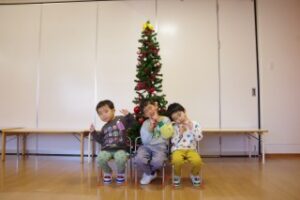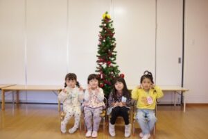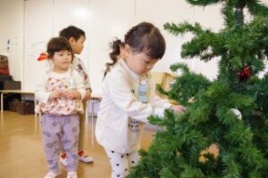 木の部分に装飾するのはあまり慣れておらず苦戦する姿がありましたが、お友だちや保育者と協力してとても可愛いクリスマスツリーを飾ることができました。