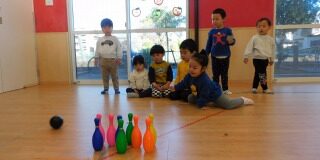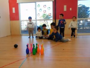 室内では、ブロックをしたりボウリング遊びをしたりしました。