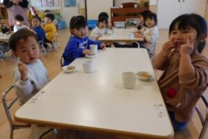「おいしいね!」とお友だち同士で会話を楽しみながら食べていました。