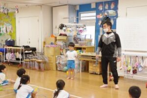 なでしこ組の遊戯練習を楽しみながら行った後は…あじさい組さんの和太鼓練習や、ひまわり組さんの合奏練習でのかっこいい姿を見ました。