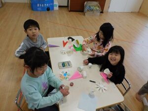 小さいお友だちは、お兄さんお姉さんに優しく教えてもらいながら楽しそうに作っていました。