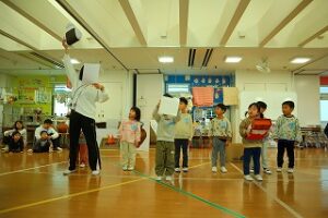 発表会練習では、遊戯とオペレッタ(劇)をしました。