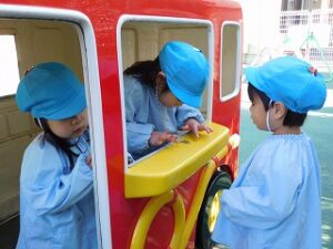 アイス屋さんごっこでは、いちご味やチョコレート味など色々な種類のアイスが登場し、店員さんとお客さんになりきって楽しそうに遊んでいました。