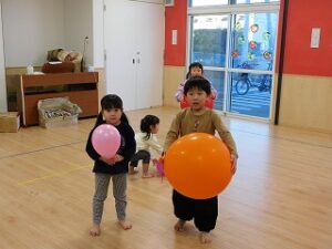 午後は、室内で風船遊びをしました。