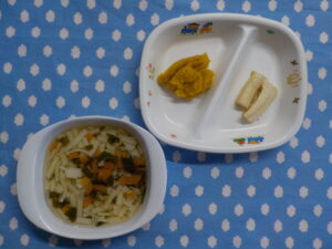 1月152026あおぞら給食 <給食> ・五目ラーメン ・コロッケ ・バナナ <離乳食> 〇後期食 ・煮込みうどん ・マッシュかぼちゃ ・バナナ <おやつ> ・牛乳 ・ツナおにぎり 〇完了食 ・牛乳 ・ツナごはん <離乳食> 〇後期食 ・ブロッコリー粥 Category: あおぞら給食2026年1月15日 Share this post Share on FacebookShare on Facebook Share on XShare on X Post navigationPreviousPrevious post:1月15日(木)Related posts1月14日(水)2026年1月14日1月13日(火)2026年1月13日1月10日(土)2026年1月10日1月9日(金) ☆鏡開き2026年1月9日1月8日(木)2026年1月8日1月7日(水) ☆お正月メニュー2026年1月7日1月6日(火)2026年1月6日1月5日(月)2026年1月5日12月27日(土)2025年12月27日12月26日(金)2025年12月26日12月24日(水)2025年12月24日12月23日(火)2025年12月23日12月23日(月)2025年12月22日12月20日(土)2025年12月20日12月19日(金)2025年12月19日12月18日(木)2025年12月18日12月17日(木)2025年12月17日12月16日(火)2025年12月16日12月15日(火)2025年12月15日12月13日(土)2025年12月13日12月12日(金)2025年12月12日12月11日(木)2025年12月11日12月10日(水)2025年12月10日12月9日(火)2025年12月9日