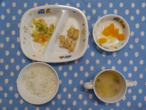 1月282026あおぞら給食 <給食> ・みそマヨつくね ・キャベツのサラダ ・ごはん ・中華スープ ・みかん 〇完了食 <おやつ> ・牛乳 ・シュガートースト 〇完了食 Category: あおぞら給食2026年1月28日 Share this post Share on FacebookShare on Facebook Share on XShare on X Post navigationPreviousPrevious post:1月28日(水)Related posts1月27日(火)2026年1月27日1月26日(月)2026年1月26日1月23日(金)2026年1月23日1月22日(木)2026年1月22日1月21日(水) 2026年1月21日1月20日(火)2026年1月20日1月19日(月)2026年1月19日1月16日(金)2026年1月16日1月15日(木)2026年1月15日1月14日(水)2026年1月14日1月13日(火)2026年1月13日1月10日(土)2026年1月10日1月9日(金) ☆鏡開き2026年1月9日1月8日(木)2026年1月8日1月7日(水) ☆お正月メニュー2026年1月7日1月6日(火)2026年1月6日1月5日(月)2026年1月5日12月27日(土)2025年12月27日12月26日(金)2025年12月26日12月24日(水)2025年12月24日12月23日(火)2025年12月23日12月23日(月)2025年12月22日12月20日(土)2025年12月20日12月19日(金)2025年12月19日