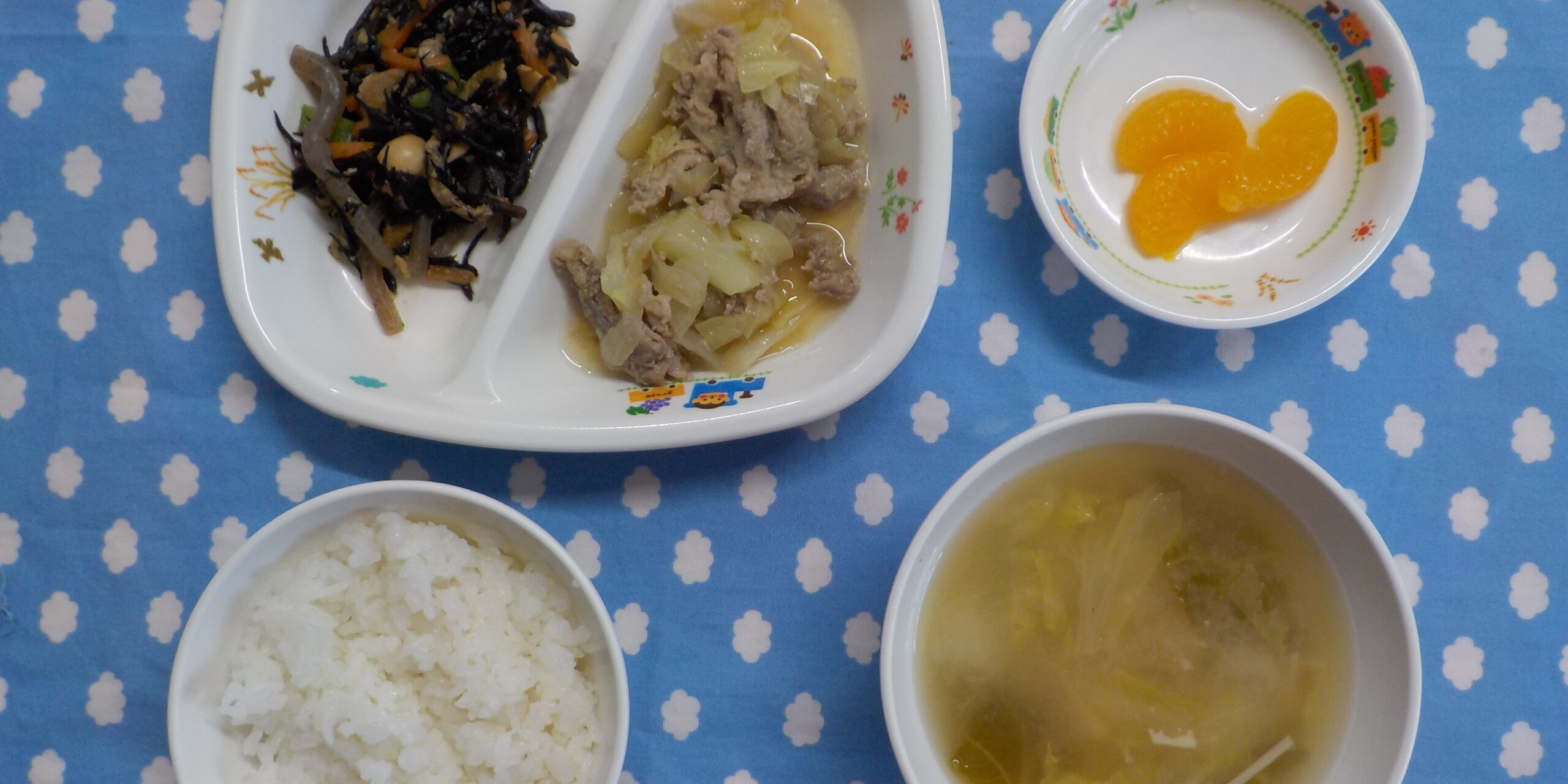 2月62026あおぞら給食 <給食> ・豚肉のしょうが焼き ・大豆とひじきの煮物 ・ごはん ・味噌汁 ・みかん 〇完了食 <おやつ> ・牛乳 ・さつまいもスティック 〇完了食 <離乳食> ・マッシュさつまいも Category: あおぞら給食2026年2月6日 Share this post Share on FacebookShare on Facebook Share on XShare on X Post navigationPreviousPrevious post:2月5日(木)NextNext post:2月6日(金)Related posts2月5日(木)2026年2月5日2月4日(水)2026年2月4日2月3日(火) ☆節分メニュー2026年2月3日2月2日(月)2026年2月2日1月30日(金)2026年1月30日1月29日(木)2026年1月29日1月28日(水)2026年1月28日1月27日(火)2026年1月27日1月26日(月)2026年1月26日1月23日(金)2026年1月23日1月22日(木)2026年1月22日1月21日(水) 2026年1月21日1月20日(火)2026年1月20日1月19日(月)2026年1月19日1月16日(金)2026年1月16日1月15日(木)2026年1月15日1月14日(水)2026年1月14日1月13日(火)2026年1月13日1月10日(土)2026年1月10日1月9日(金) ☆鏡開き2026年1月9日1月8日(木)2026年1月8日1月7日(水) ☆お正月メニュー2026年1月7日1月6日(火)2026年1月6日1月5日(月)2026年1月5日