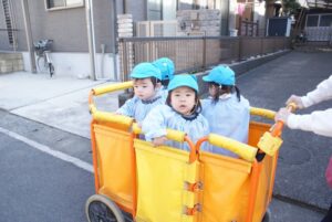 園周辺をお散歩カートでお散歩しました。