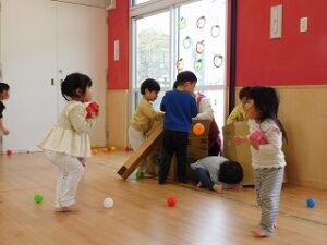サーキットの後は、カラーボールを使って遊びました。