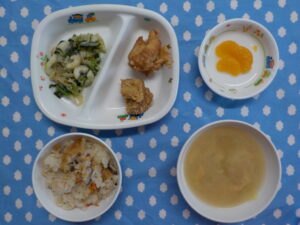 2月132026あおぞら給食 <給食> ・鶏肉のから揚げ ・こまつなとちくわのナムル ・炊き込みごはん ・味噌汁 ・みかん <おやつ> ・牛乳 ・きな粉トースト Category: あおぞら給食2026年2月13日 Share this post Share on FacebookShare on Facebook Share on XShare on X Post navigationPreviousPrevious post:2月12日(木)NextNext post:2月13日(金)Related posts2月16日(月)2026年2月16日2月14日(土)2026年2月14日2月12日(木)2026年2月12日2月10日(火)2026年2月10日2月9日(月)2026年2月9日2月7日(土)2026年2月7日2月6日(金)2026年2月6日2月5日(木)2026年2月5日2月4日(水)2026年2月4日2月3日(火) ☆節分メニュー2026年2月3日2月2日(月)2026年2月2日1月30日(金)2026年1月30日1月29日(木)2026年1月29日1月28日(水)2026年1月28日1月27日(火)2026年1月27日1月26日(月)2026年1月26日1月23日(金)2026年1月23日1月22日(木)2026年1月22日1月21日(水) 2026年1月21日1月20日(火)2026年1月20日1月19日(月)2026年1月19日1月16日(金)2026年1月16日1月15日(木)2026年1月15日1月14日(水)2026年1月14日