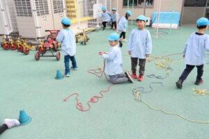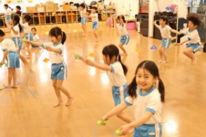 縄跳びではまえとびやうしろとびなど色々な技に挑戦しています。