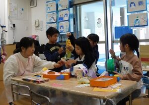 子どもたちの作った作品は園に飾っていますので、ぜひご覧ください。