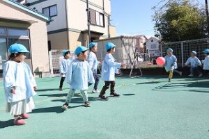 午後は、雨がやみ日がでてきたので、園庭に出て遊びました。